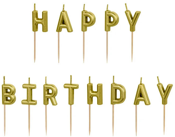 Happy Birthday betű gyertya, arany. 2,5 cm.
