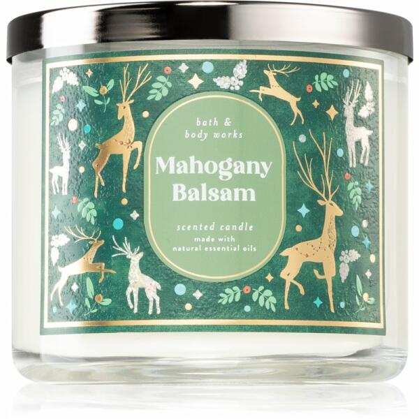Bath & Body Works Mahogany Balsam, 411 g, Illatgyertyák Illatok lakásba, Az otthonát csodálatos aromával illatosító Bath & Body Works Mahogany Balsam illatgyertya olyan meghitt hangulatot teremt, melynek köszönhetően mindig remekül érzi majd magát. Tulajdonságok: fás illat gyógyfüves aroma dizájnos csomagolás ajándékként is ideális hosszú égési idő 3 kanóc Össz