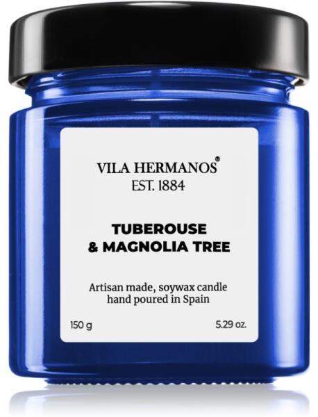 Vila Hermanos Apothecary Cobalt Blue Tuberose & Magnolia Tree, 150 g, Illatgyertyák Illatok lakásba, Az otthonát csodálatos aromával illatosító Vila Hermanos Apothecary Cobalt Blue Tuberose & Magnolia Tree illatgyertya olyan meghitt hangulatot teremt, melynek köszönhetően mindig remekül érzi majd magát. Tulajdonságok: virágos illat Összetétel: szójaviasz tartalommal pamut