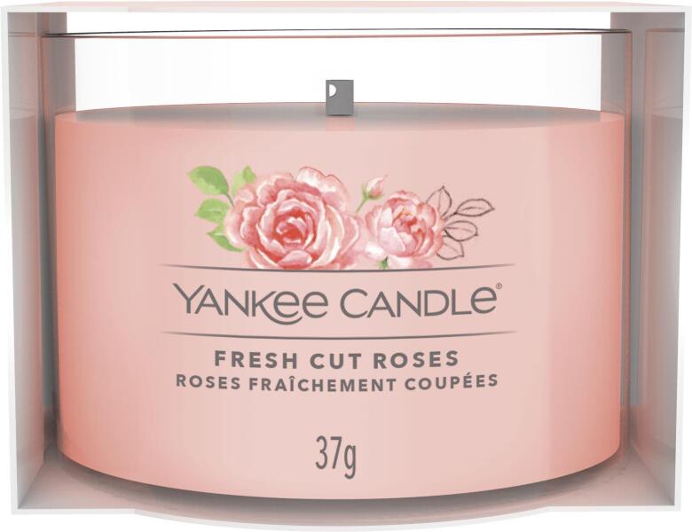 Yankee Candle Fresh Cut Roses, 37 g, Viaszgyertya Illatok lakásba, Az otthonát csodálatos aromával illatosító Yankee Candle Fresh Cut Roses fogadalmi gyertya olyan meghitt hangulatot teremt, melynek köszönhetően mindig remekül és felszabadultnak érzi majd magát. Tulajdonságok: virágos illat Összetétel: szójaviasz tartalommal Használata: A mécsest kellően hőálló felületre h