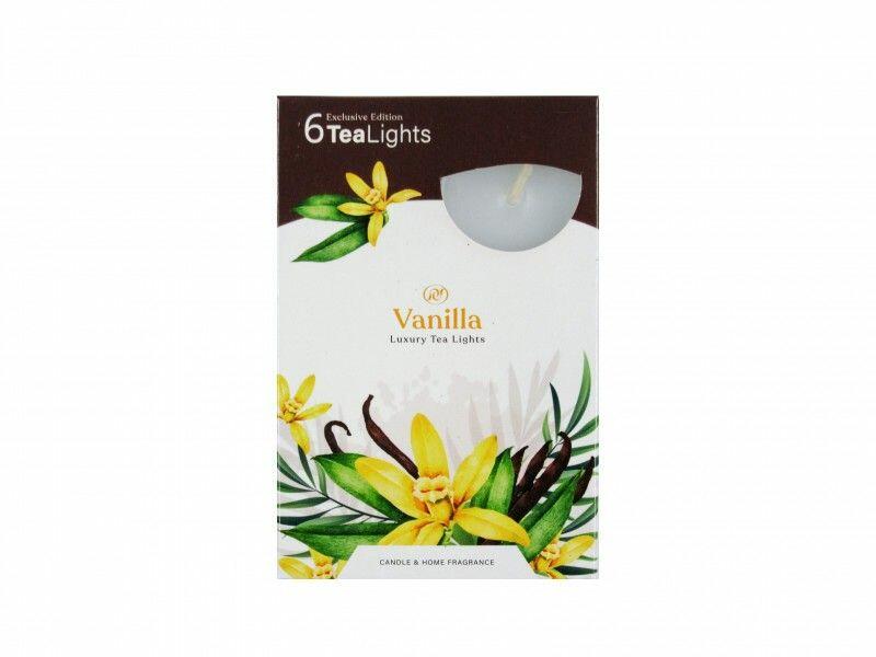 Illatos teamécses Vanilla Luxury 6db Befoglaló méretek 8x1.5x12 cmAnyaga paraffin, fém