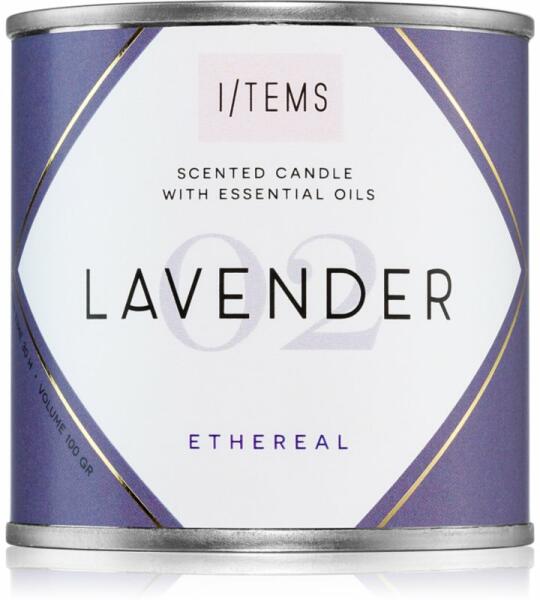 I/TEMS Essential 02 / Lavender, 100 g, Illatgyertyák Illatok lakásba, Az otthonát csodálatos aromával illatosító I/TEMS Essential 02 / Lavender illatgyertya olyan meghitt hangulatot teremt, melynek köszönhetően mindig remekül érzi majd magát. Tulajdonságok: gyógyfüves aroma dizájnos csomagolás hosszú égési idő kézzel készített tiszta égés Összetétel: 100%-ban természe