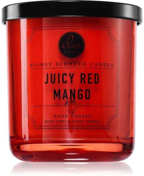 DW Home Signature Juicy Red Mango, 275 g, Illatgyertyák Illatok lakásba, Az otthonát csodálatos aromával illatosító DW Home illatgyertya olyan meghitt hangulatot teremt, melynek köszönhetően mindig remekül érzi majd magát. Tulajdonságok: gyümölcsös illat édes aroma Összetétel: esszenciális olajokkal Használata: A mécsest kellően hőálló felületre helyezze. 4 óránál ho