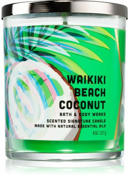 Bath & Body Works Waikiki Beach Coconut, 227 g, Illatgyertyák Illatok lakásba, Az otthonát csodálatos aromával illatosító Bath & Body Works illatgyertya olyan meghitt hangulatot teremt, melynek köszönhetően mindig remekül érzi majd magát. Tulajdonságok: édes aroma trópusi illat nyári illat Összetétel: esszenciális olajokkal Használata: A mécsest kellően hőálló fel