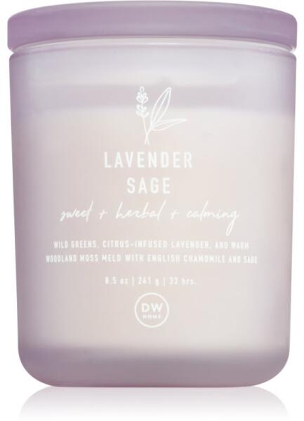 DW Home Prime Lavender Sage, 241 g, Illatgyertyák Illatok lakásba, Az otthonát csodálatos aromával illatosító DW Home Happiness illatgyertya olyan meghitt hangulatot teremt, melynek köszönhetően mindig remekül érzi majd magát. Tulajdonságok: gyógyfüves aroma citrus illat Összetétel: esszenciális olajokkal Használata: A mécsest kellően hőálló felületre helyezze. 4 óráná
