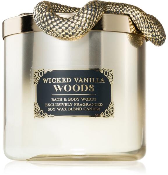 Bath & Body Works Wicked Vanilla Woods, 411 g, Illatgyertyák Illatok lakásba, Az otthonát csodálatos aromával illatosító Bath & Body Works Caramel Pumpkin Swirl illatgyertya olyan meghitt hangulatot teremt, melynek köszönhetően mindig remekül érzi majd magát. Tulajdonságok: melengető illat Összetétel: esszenciális olajokkal Használata: A mécsest kellően hőálló felü