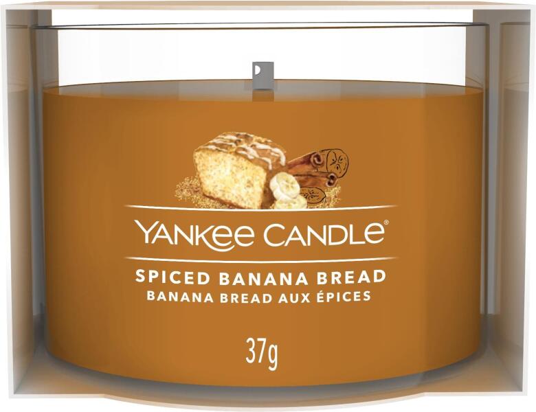 Yankee Candle Spiced Banana Bread, 37 g, Viaszgyertya Illatok lakásba, Az otthonát csodálatos aromával illatosító Yankee Candle Spiced Banana Bread fogadalmi gyertya olyan meghitt hangulatot teremt, melynek köszönhetően mindig remekül és felszabadultnak érzi majd magát. Tulajdonságok: karácsonyi aroma édes aroma Használata: A mécsest kellően hőálló felületre helyezze. 4 ór