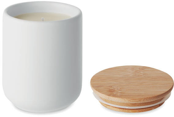 Növényi viaszgyertya 200 g Illatosított növényi alapú viaszgyertya kőcserép tartóban, bambuszfedéllel. 200 g. Égési idő: 36 óra. Illat: frissen mosott ruha. A bambusz természetes anyag, színében, mintázatában és méretében esetenként eltérő lehet. Szivárgásmentes.