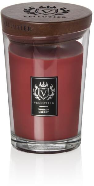 Nagy illatgyertya - Vintage Library 515 gA Vellutier gyertyák szinte igazi ékszerek - a legmagasabb minõséget rejtik magukban, különleges receptúrájú bársonyos viaszba rejtve és a márkánknak dedikált egyedi üvegbe csomagolva. Kifinomult formája, a jellegzetes két szögletű csiszolással, tökéletes alakot formál a pontosan illeszkedõ, valódi fából készült fedéllel. A fá