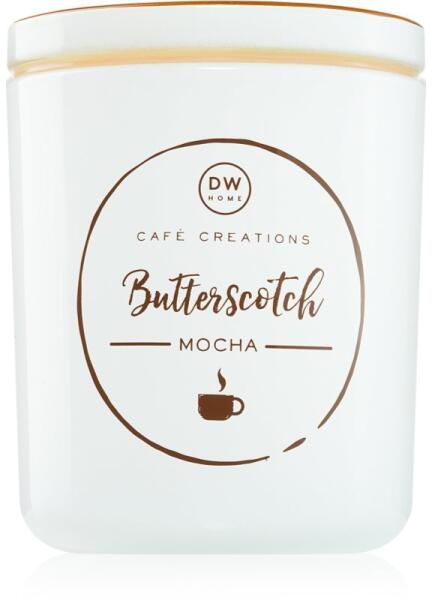 DW Home Cafe Creations Butterscotch Mocha, 262 g, Illatgyertyák Illatok lakásba, Az otthonát csodálatos aromával illatosító DW Home Cafe Creations Butterscotch Mocha illatgyertya olyan meghitt hangulatot teremt, melynek köszönhetően mindig remekül érzi majd magát. Tulajdonságok: édes aroma melengető illat Összetétel: kókuszviasz tartalommal Használata: A mécsest kellően hőá