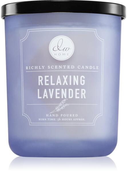 DW Home Signature Relaxing Lavender, 425 g, Illatgyertyák Illatok lakásba, Az otthonát csodálatos aromával illatosító DW Home Signature Relaxing Lavender illatgyertya olyan meghitt hangulatot teremt, melynek köszönhetően mindig remekül érzi majd magát. Tulajdonságok: kézzel készített tiszta égés Összetétel: esszenciális olajokkal Használata: A mécsest kellően hőálló fel