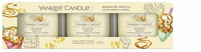 A szett tartalma: Illatgyertya üvegben Banoffee Gofri 3 x 37 g