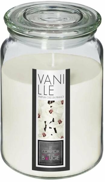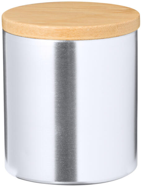 Vanília illatú gyertya alumínium tartóban, bambusz fedővel.