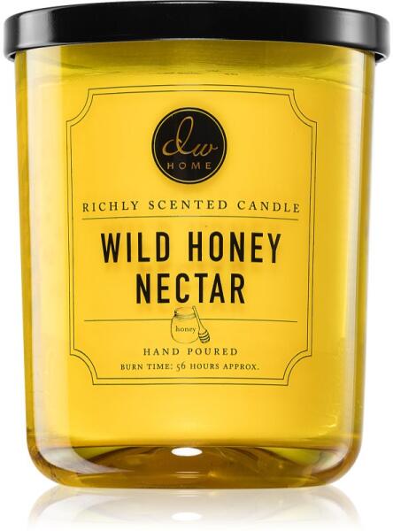 DW Home Signature Wild Honey Nectar, 425 g, Illatgyertyák Illatok lakásba, Az otthonát csodálatos aromával illatosító DW Home Signature Wild Honey Nectar illatgyertya olyan meghitt hangulatot teremt, melynek köszönhetően mindig remekül érzi majd magát. Tulajdonságok: édes aroma gourmand illat Összetétel: kókuszviasz tartalommal Használata: A mécsest kellően hőálló felületr