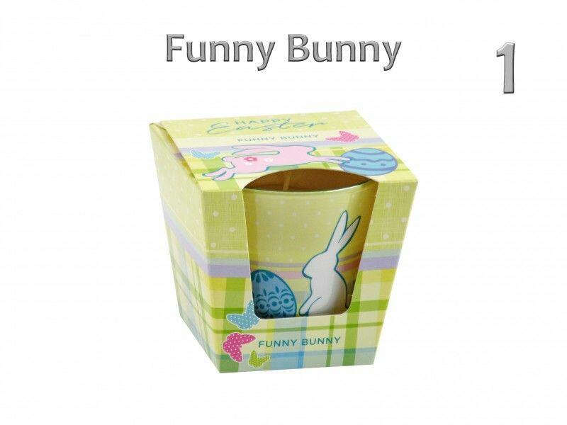 Illatgyertya pohárban Happy Easter 8,5cm 2féle 2féle típus választhatóBefoglaló méretek 9x9x9 cmAnyaga paraffin, üveg