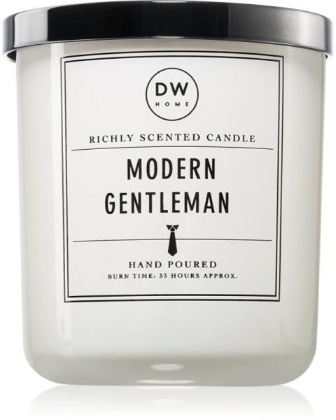 DW Home Signature Modern Gentleman, 262 g, Illatgyertyák Illatok lakásba, Az otthonát csodálatos aromával illatosító DW Home Signature Modern Gentleman illatgyertya olyan meghitt hangulatot teremt, melynek köszönhetően mindig remekül érzi majd magát. Tulajdonságok: tiszta égés Használata: A mécsest kellően hőálló felületre helyezze. 4 óránál hosszabb ideig ne hagyja égni