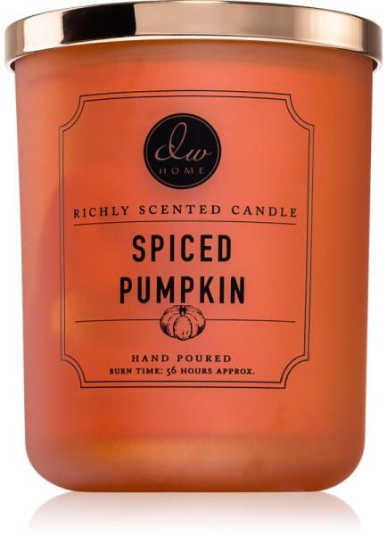 DW Home Signature Spiced Pumpkin, 445 g, Illatgyertyák Illatok lakásba, Az otthonát csodálatos aromával illatosító DW Home Ocean Sapphire illatgyertya olyan meghitt hangulatot teremt, melynek köszönhetően mindig remekül érzi majd magát. Tulajdonságok: őszi illat édes aroma Összetétel: esszenciális olajokkal Használata: A mécsest kellően hőálló felületre helyezze. 4 órán