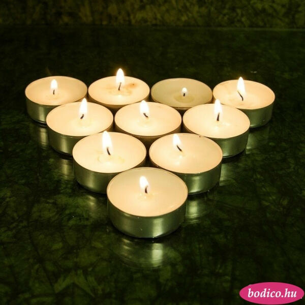 A klasszikus fehér mécsesek finoman világítanak, tökéletesen illenek bármilyen dekorációhoz vagy aromaterápiás használatra. Égési idejük hosszan tartó, így hosszú órákon át élvezheted a kellemes fényt és atmoszférát. Ideálisak romantikus vacsorákhoz, fürdőkád melletti relaxációhoz vagy akár ünnepi dekorációkhoz is. Jellemzők: 10 db fehér teamécses Égési id