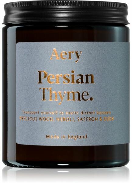 Aery Fernweh Persian Thyme, 140 g, Illatgyertyák Illatok lakásba, Az otthonát csodálatos aromával illatosító Aery Fernweh Persian Thyme illatgyertya olyan meghitt hangulatot teremt, melynek köszönhetően mindig remekül érzi majd magát. Tulajdonságok: melengető illat vegán termék tiszta égés Összetétel: esszenciális olajokkal GMO mentes paraffint nem tartalmaz Használata: A m