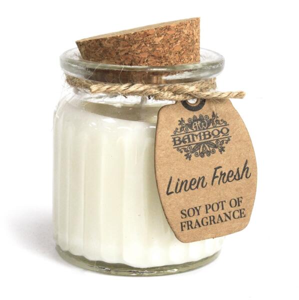 Ezt a FRISS VÁSZON illatú szójaviasz gyertyát üvegben kínáljuk, mely alkalmas ismételt használatra, parafa dugóval és természetes papír etikettel, mely juta zsinórral van rögzítve a gyertyához. A szójaviasz fő előnye az, hogy kiválóan tárolja az illatot és fokozatosan szabadítja fel ezt égés közben. A szójagyertyák tisztábban, hidegebben égnek, mint a parafin gyerty
