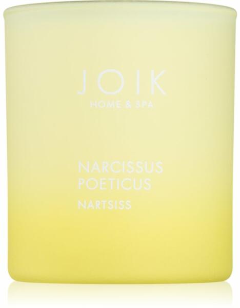 JOIK Home & Spa Narcissus, 150 g, Illatgyertyák Illatok lakásba, Az otthonát csodálatos aromával illatosító JOIK Home & Spa Narcissus illatgyertya olyan meghitt hangulatot teremt, melynek köszönhetően mindig remekül érzi majd magát. Tulajdonságok: tavaszi illat vegán termék tiszta égés Összetétel: biológiailag lebomló viasz paraffint nem tartalmaz szerves minőségű