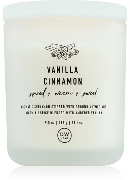 DW Home Prime Vanilla Cinnamon, 265 g, Illatgyertyák Illatok lakásba, Az otthonát csodálatos aromával illatosító DW Home Prime Vanilla Cinnamon illatgyertya olyan meghitt hangulatot teremt, melynek köszönhetően mindig remekül érzi majd magát. Összetétel: esszenciális olajokkal Használata: A mécsest kellően hőálló felületre helyezze. 4 óránál hosszabb ideig ne hagyja égni