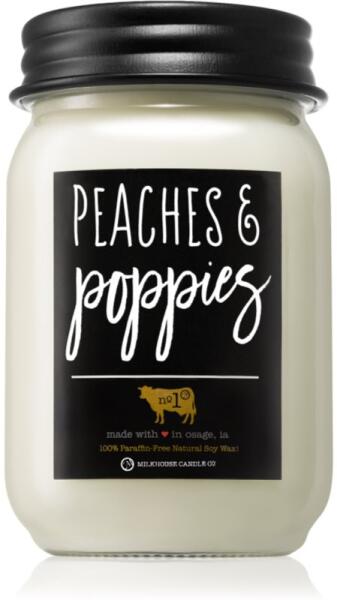 Milkhouse Candle Co. Farmhouse Peaches & Poppies, 368 g, Illatgyertyák Illatok lakásba, Az otthonát csodálatos aromával illatosító Milkhouse Candle Co. illatgyertya olyan meghitt hangulatot teremt, melynek köszönhetően mindig remekül érzi majd magát. Tulajdonságok: gyümölcsös illat édes aroma hosszú égési idő Összetétel: növényi viaszok keveréke 100%-ban természetes