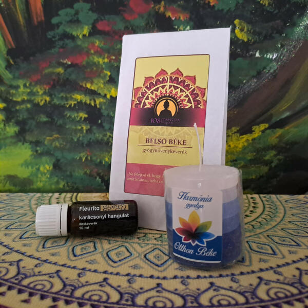 Otthon melege csomag A csomag tartalma: -10 ml Karácsonyi illóolaj -50 grammos Belső Béke Tea -Harmónia-Otthon Béke gyertya -"Belső Béke" Gyógynövénykeverék Tea 50 gr Összetevők: citromfűlevél, csarabfű, fodormenta, galagonyabogyó, levendula, orbáncfű, szúrósgyöngyajakfű, vasfű Származási hely: Magyarország "Kerülj harmóniába Önmagaddal, találd meg a Belső Békéd
