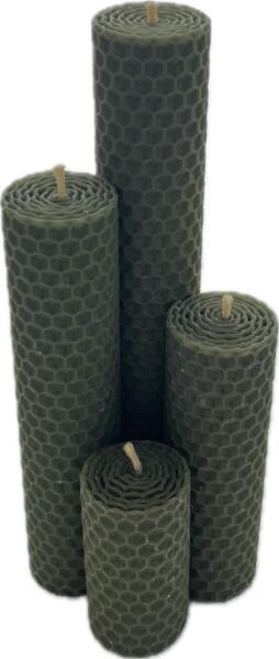 A gyönyörű zöld színű, méhsejt lapokból készült adventi gyertyák tökéletes kiegészítők az ünnepi hangulat megteremtéséhez otthonában. Ez a kézzel készített adventi gyertyaszett természetes méhviaszból négy különböző méretű gyertyát tartalmaz (180, 140, 100 és 60 mm), amelyek átmérője 30 mm, és tökéletesek a fokozatos meggyújtáshoz az adventi időszak sor