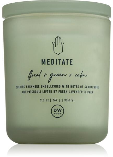 DW Home Prime Meditate, 262 g, Illatgyertyák Illatok lakásba, Az otthonát csodálatos aromával illatosító DW Home Happiness illatgyertya olyan meghitt hangulatot teremt, melynek köszönhetően mindig remekül érzi majd magát. Tulajdonságok: kézzel készített Összetétel: esszenciális olajokkal Használata: A mécsest kellően hőálló felületre helyezze. 4 óránál hosszabb ideig