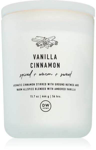 DW Home Prime Vanilla Cinnamon, 445 g, Illatgyertyák Illatok lakásba, Az otthonát csodálatos aromával illatosító DW Home Prime Vanilla Cinnamon illatgyertya olyan meghitt hangulatot teremt, melynek köszönhetően mindig remekül érzi majd magát. Összetétel: esszenciális olajokkal Használata: A mécsest kellően hőálló felületre helyezze. 4 óránál hosszabb ideig ne hagyja égni