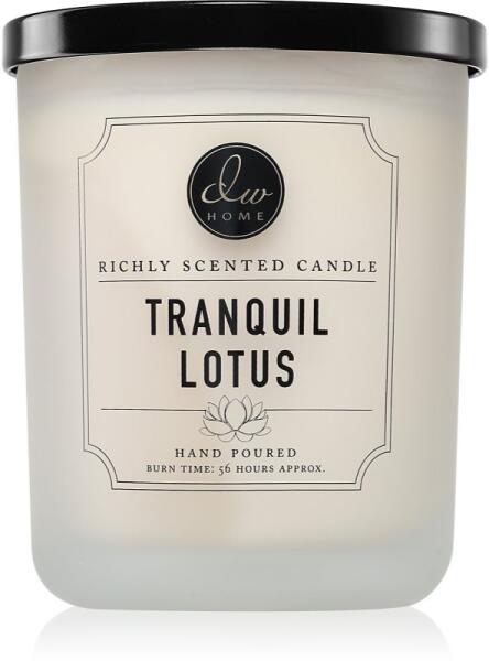 DW Home Signature Tranquil Lotus, 525 g, Illatgyertyák Illatok lakásba, Az otthonát csodálatos aromával illatosító DW Home Signature illatgyertya olyan meghitt hangulatot teremt, melynek köszönhetően mindig remekül érzi majd magát. Tulajdonságok: tiszta púderes illat Összetétel: esszenciális olajokkal Használata: A mécsest kellően hőálló felületre helyezze. 4 óránál hos