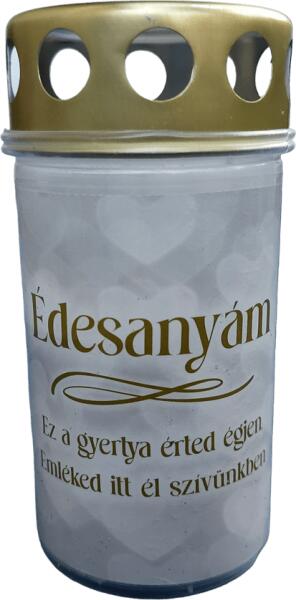 Feliratos Mécses / Kegyeleti Mécses ""Édesanyám ez a gyertya érted égjen, emléked itt él szívünkben"" feliratú műanyag mécses, kegyeleti mécses. Méret: 6 cm x 6 cm x 12 cm (Szállítás 990ft-tól) SÍRDÍSZ, MÉCSES, KEGYELETI DEKORÁCIÓ