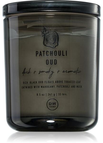 DW Home Prime Patchouli Oud, 241 g, Illatgyertyák Illatok lakásba, Az otthonát csodálatos aromával illatosító DW Home Prime Patchouli Oud illatgyertya olyan meghitt hangulatot teremt, melynek köszönhetően mindig remekül érzi majd magát. Tulajdonságok: fás illat keleties aroma Összetétel: kókuszviasz tartalommal Használata: A mécsest kellően hőálló felületre helyezze. 4 ór