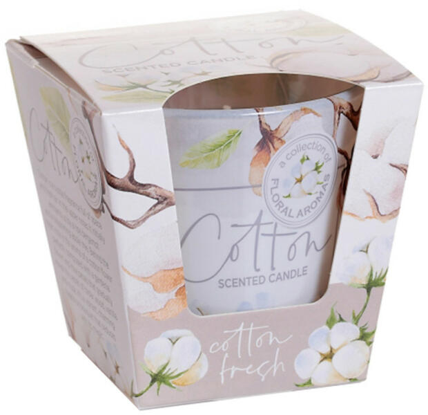 Bartek illatgyertya üvegpohárban Pamut - Cotton Fresh A pamut finom illata, tele szabadsággal és friss levegő érzésével. A fejjegyekben kezdetben az érett bergamott és egy virágzó almafa varázsol el bennünket. A szívjegyek mögött a pamutvirág illata húzódik meg, tökéletesen megkomponálva gardénia virággal és rózsaszirmokkal, amelyek fokozatosan felfedik a cédrusfa, a va