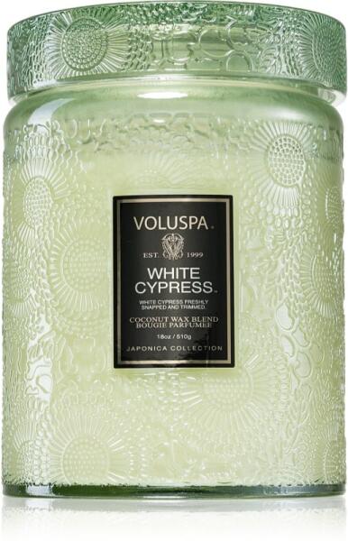 VOLUSPA Japonica Holiday White Cypress, 510 g, Illatgyertyák Illatok lakásba, Az otthonát csodálatos aromával illatosító VOLUSPA Japonica Holiday White Cypress illatgyertya olyan meghitt hangulatot teremt, melynek köszönhetően mindig remekül érzi majd magát. Tulajdonságok: fás illat téli illat dizájnos csomagolás Összetétel: kókuszviasz tartalommal Használata: A mécsest kell