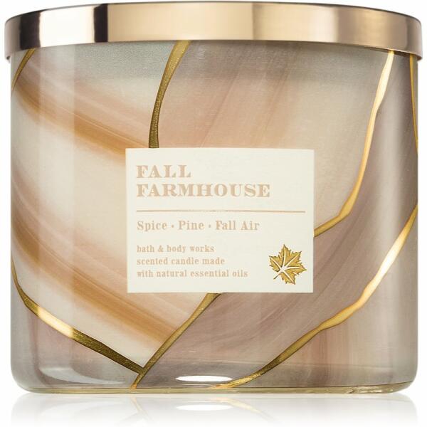 Bath & Body Works Fall Farmhouse, 411 g, Illatgyertyák Illatok lakásba, Az otthonát csodálatos aromával illatosító Bath & Body Works Fall Farmhouse illatgyertya olyan meghitt hangulatot teremt, melynek köszönhetően mindig remekül érzi majd magát. Tulajdonságok: 3 kanóc hosszú égési idő ajándékként is ideális fás illat Összetétel: pamut kanóc Használata: A mécse