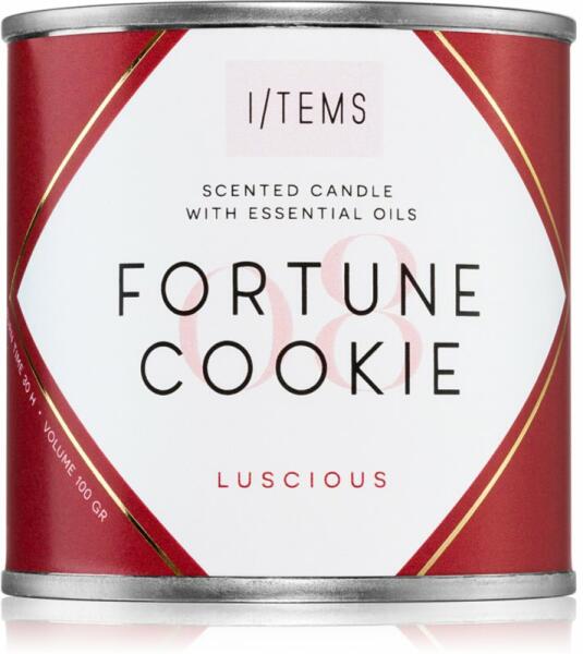 I/TEMS Essential Fortune Cookie, 100 g, Illatgyertyák Illatok lakásba, Az otthonát csodálatos aromával illatosító I/TEMS Essential Fortune Cookie illatgyertya olyan meghitt hangulatot teremt, melynek köszönhetően mindig remekül érzi majd magát. Tulajdonságok: édes aroma dizájnos csomagolás hosszú égési idő kézzel készített tiszta égés Összetétel: 100%-ban természetes