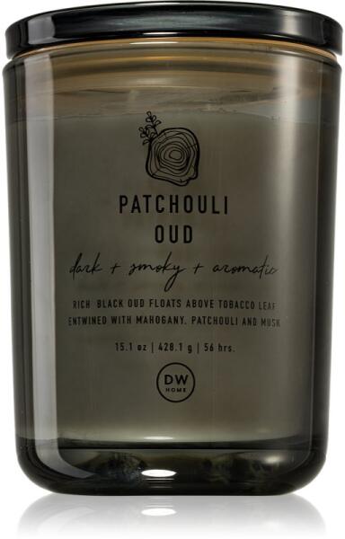 DW Home Prime Patchouli Oud, 428 g, Illatgyertyák Illatok lakásba, Az otthonát csodálatos aromával illatosító DW Home Prime Patchouli Oud illatgyertya olyan meghitt hangulatot teremt, melynek köszönhetően mindig remekül érzi majd magát. Tulajdonságok: fás illat keleties aroma Összetétel: kókuszviasz tartalommal Használata: A mécsest kellően hőálló felületre helyezze. 4 ór