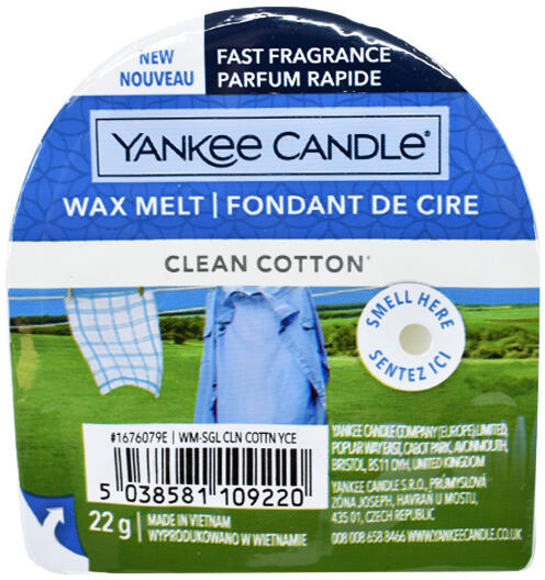 Tegye kellemessé otthonát a legszebb illatokkal, a Yankee Candle Wax Clean Cotton illatos viasz aromájának köszönhetően. A tiszta pamut egyedi illata fantasztikus illatot hoz létre otthonában. Az illatos viasz néhány perc alatt illatosítja az egész lakást. Ez egyszerűen feloldódik az aromalámpában egy közönséges tea gyertya segítségével, és így kellemes illatot idéz elő