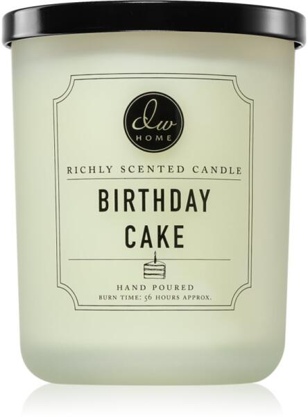 DW Home Signature Birthday Cake, 425 g, Illatgyertyák Illatok lakásba, Az otthonát csodálatos aromával illatosító DW Home Signature Birthday Cake illatgyertya olyan meghitt hangulatot teremt, melynek köszönhetően mindig remekül érzi majd magát. Tulajdonságok: édes aroma gourmand illat Használata: A mécsest kellően hőálló felületre helyezze. 4 óránál hosszabb ideig ne hagyj