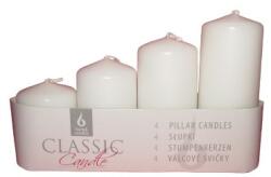 kiszerelés: 4 db gyertya/csomag méret: 4 cm X 5,5 cm, 4 cm X 7 cm, 4 cm X 8,5 cm, 4 cm X 10 cm anyaga: paraffin Kérjük figyelembe venni, hogy az eredeti termék színe és a monitoron megjelenő színek a valóságban eltérhetnek egymástól!