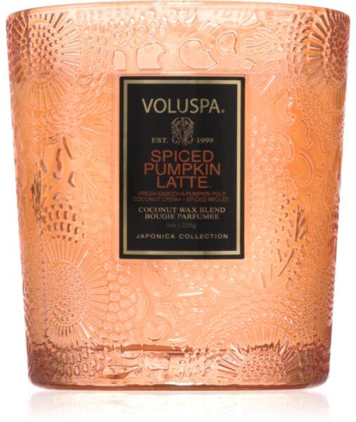 VOLUSPA Japonica Holiday Spiced Pumpkin Latte, 255 g, Illatgyertyák Illatok lakásba, Az otthonát csodálatos aromával illatosító VOLUSPA Japonica Holiday Spiced Pumpkin Latte illatgyertya olyan meghitt hangulatot teremt, melynek köszönhetően mindig remekül érzi majd magát. Tulajdonságok: tematikus ünnepi illat dizájnos csomagolás bármilyen belső tér luxus kiegészítője Összet