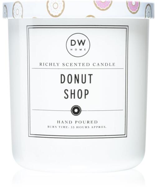 DW Home Signature Donut Shop, 258 g, Illatgyertyák Illatok lakásba, Az otthonát csodálatos aromával illatosító DW Home Signature Donut Shop illatgyertya olyan meghitt hangulatot teremt, melynek köszönhetően mindig remekül érzi majd magát. Tulajdonságok: édes aroma gourmand illat Összetétel: pamut kanóc Használata: A mécsest kellően hőálló felületre helyezze. 4 óránál ho