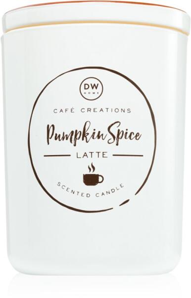DW Home Cafe Creations Pumpkin Spice Latte, 428 g, Illatgyertyák Illatok lakásba, Az otthonát csodálatos aromával illatosító DW Home Ocean Sapphire illatgyertya olyan meghitt hangulatot teremt, melynek köszönhetően mindig remekül érzi majd magát. Tulajdonságok: édes aroma Összetétel: esszenciális olajokkal Használata: A mécsest kellően hőálló felületre helyezze. 4 óráná