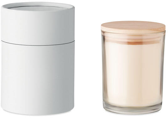 Vanília illatú gyertya Vanília illatú, növényi alapú viaszgyertya üvegben, bambuszfedéllel, hengeres papír ajándékdobozban. 8 cm átmérőjű. Égési idő: 40 óra. A bambusz természetes anyag, színében, mintázatában és méretében esetenként eltérő lehet. 240gr.