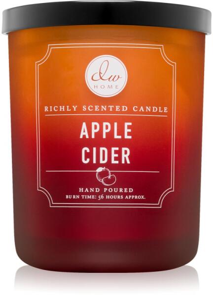 DW Home Signature Apple Cider, 438.85 g, Illatgyertyák Illatok lakásba, Az otthonát csodálatos aromával illatosító DW Home Signature Apple Cider illatgyertya olyan meghitt hangulatot teremt, melynek köszönhetően mindig remekül érzi majd magát. Tulajdonságok: gyümölcsös illat friss illat fűszeres aroma őszi illat téli illat Használata: A mécsest kellően hőálló felületre h