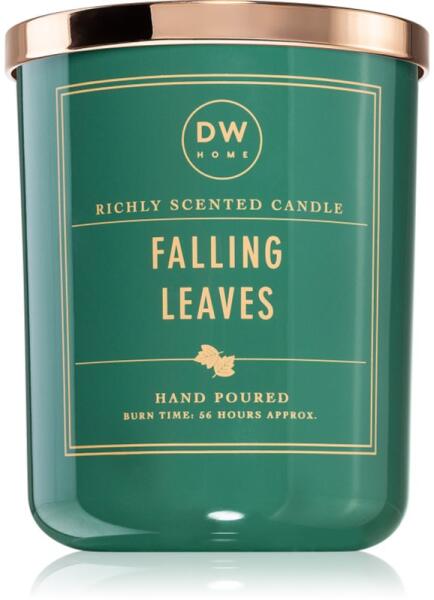 DW Home Signature Fallin Leaves, 425 g, Illatgyertyák Illatok lakásba, Az otthonát csodálatos aromával illatosító DW Home Signature Fallin Leaves illatgyertya olyan meghitt hangulatot teremt, melynek köszönhetően mindig remekül érzi majd magát. Tulajdonságok: őszi illat Használata: A mécsest kellően hőálló felületre helyezze. 4 óránál hosszabb ideig ne hagyja égni. Mindig