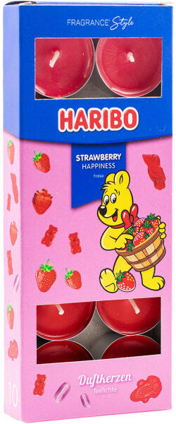 A Strawberry Happiness illatú tealámpákat az édes epres Haribo zselék szerelmeseinek találták ki! Az eperízű édességek által ihletett eredeti illat hitelességével minden Haribo-rajongót meglep. A tealámpákat egy bájos rózsaszín dobozba csomagolták, amelyen a híres Haribo mackó képe látható. Töltse meg otthonát a gyermekkor legfinomabb édességeinek illatával, és idé