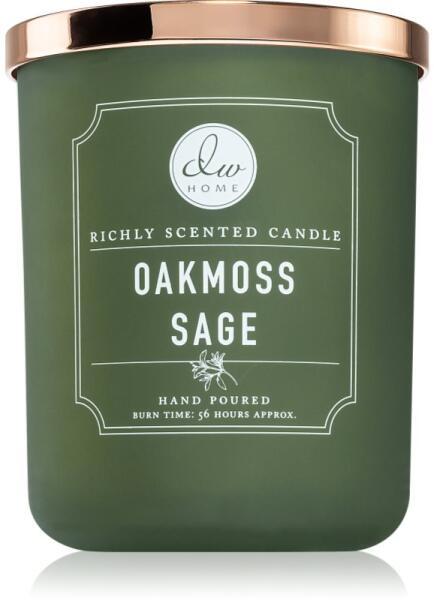 DW Home Signature Oakmoss Sage, 445 g, Illatgyertyák Illatok lakásba, Az otthonát csodálatos aromával illatosító DW Home Ocean Sapphire illatgyertya olyan meghitt hangulatot teremt, melynek köszönhetően mindig remekül érzi majd magát. Használata: A mécsest kellően hőálló felületre helyezze. 4 óránál hosszabb ideig ne hagyja égni. Mindig vigyázzon arra, hogy a mécses ne é